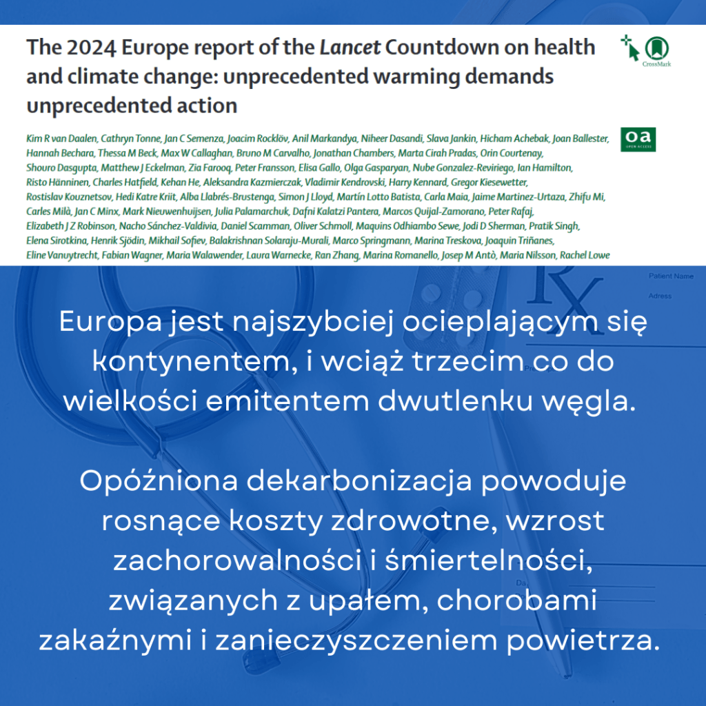 Grupa badaczy z europejskich uniwersytetów i instytutów naukowych podjęła się zebrania, analizy i podsumowania wyników badań dotyczących wpływu zmiany klimatu na zdrowie Europejczyków. Po raz drugi Raport Lancet Countdown pokazuje, że bezprecedensowa zmiana klimatu wymaga podjęcia bezprecedensowych działań.