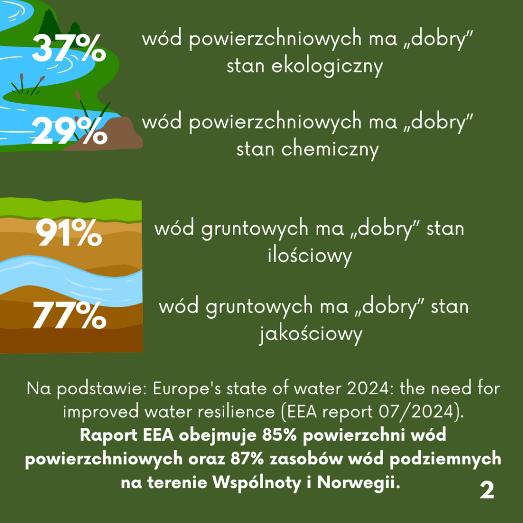 ❗️Obecnie w Europie jedynie 38% wód powierzchniowych uważa się za posiadające „zdrowy stan chemiczny”.