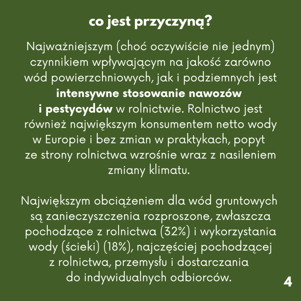 ➡️Niezbędne są zmiany w praktykach rolniczych, i wsparcie szczególnie mniejszych gospodarstw technologiami, które pozwolą na ograniczenie zanieczyszczenia i dostosowanie się do mniejszego zużycia wody.