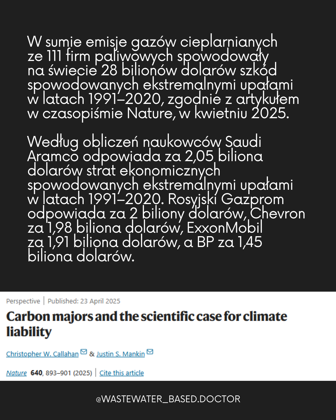 Carbon majors and the scientific case for climate liability: https://www.nature.com/articles/s41586-025-08751-3